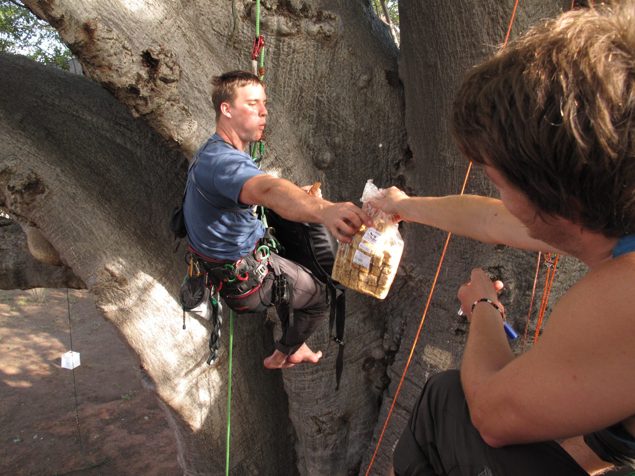 Con il supporto del dipartimento per le acque e le foreste, e dell’associazione nazionale per i parchi (DWAF e SANParks) abbiamo ottenuto il permesso e il privilegio di essere i primi a salire su alcuni degli alberi più antichi, e in molti casi di passare la notte dormendo fra i rami più alti.